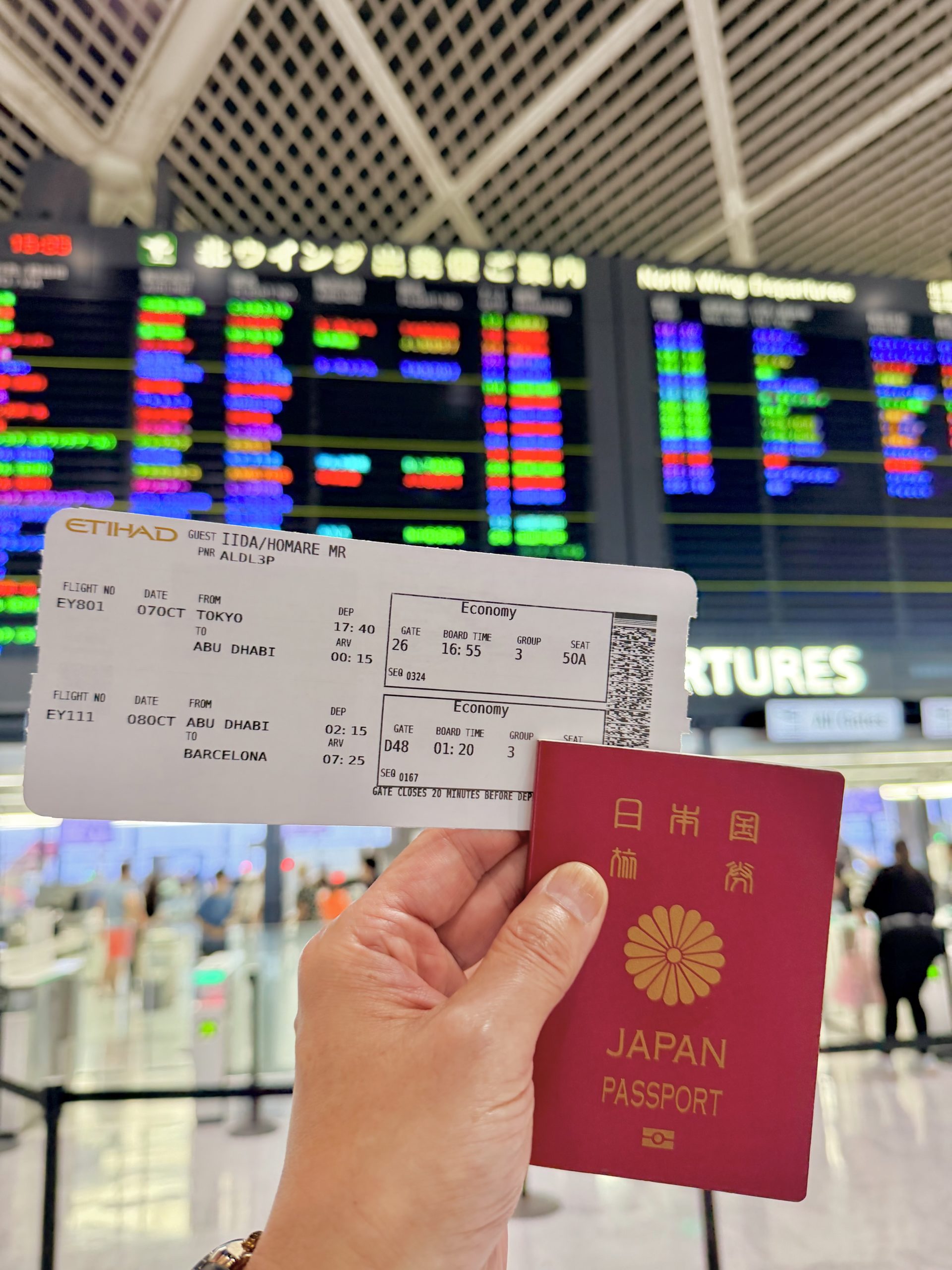 成田発アブダビ経由バルセロナ行き。