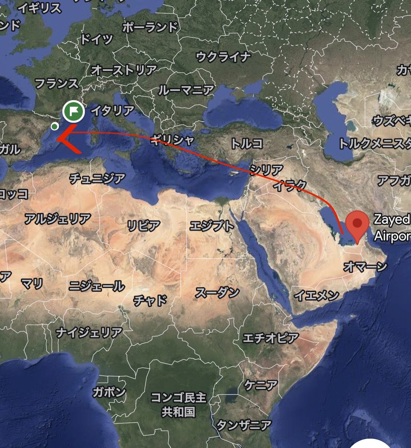 成田発アブダビ経由バルセロナ行き。