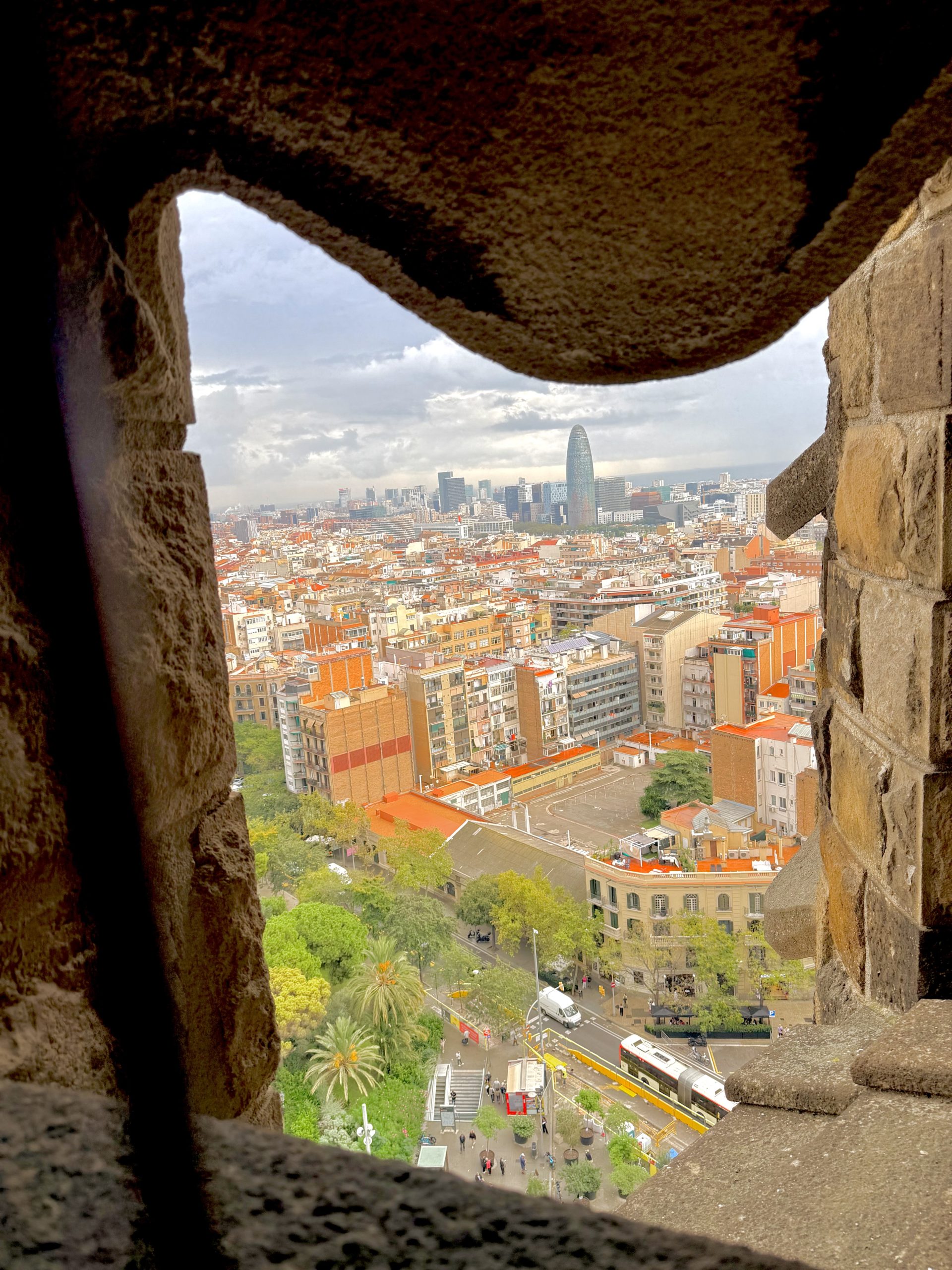 塔の窓から見えるバルセロナの街。